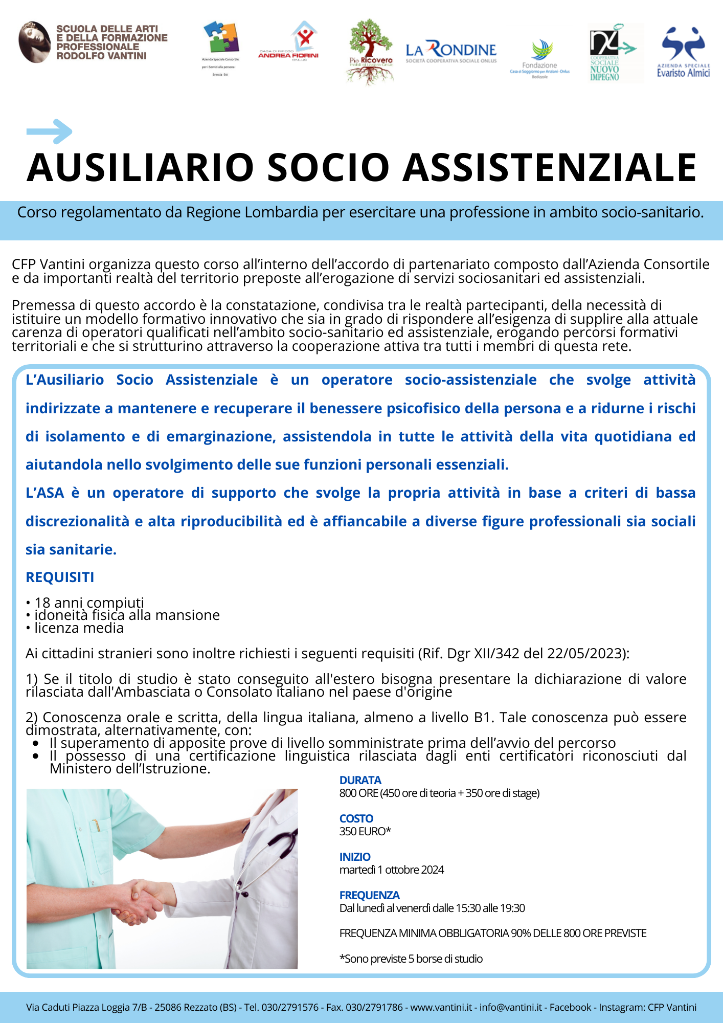 Sono aperte le iscrizioni ai Corsi formativi pe esercitare una professione socio sanitaria. Per ulteriori informazioni rivolgersi ai Servizi Sociali.