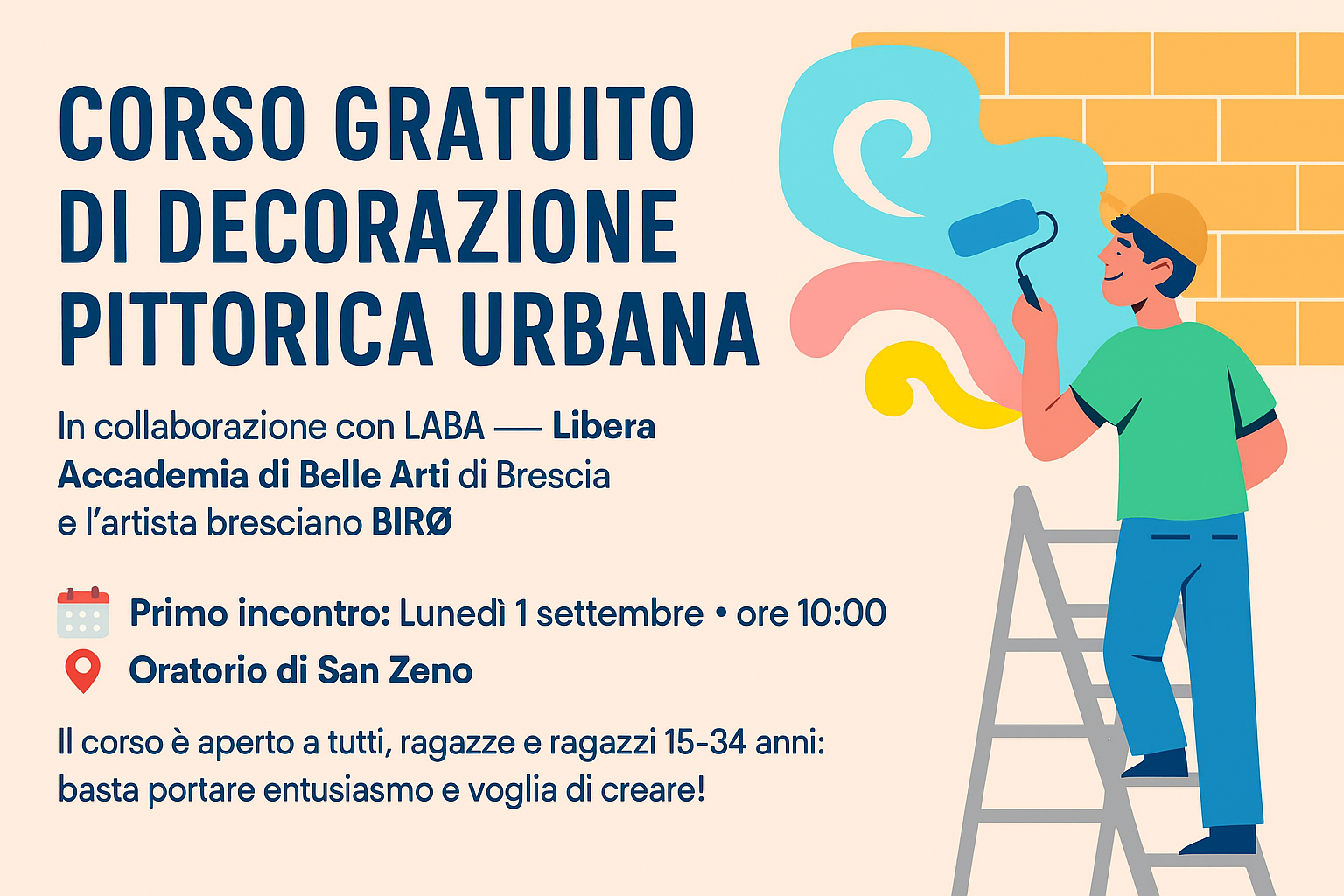 Il Comune di San Zeno Naviglio, in collaborazione con LABA – Libera Accademia di Belle Arti di Brescia e con l'artista bresciano BIRØ , promuove un'iniziativa creativa e formativa rivolta ai giovani del territorio: un corso gratuito di decorazione pittorica urbana , aperto a ragazze e ragazzi dai 15 ai 34 anni .