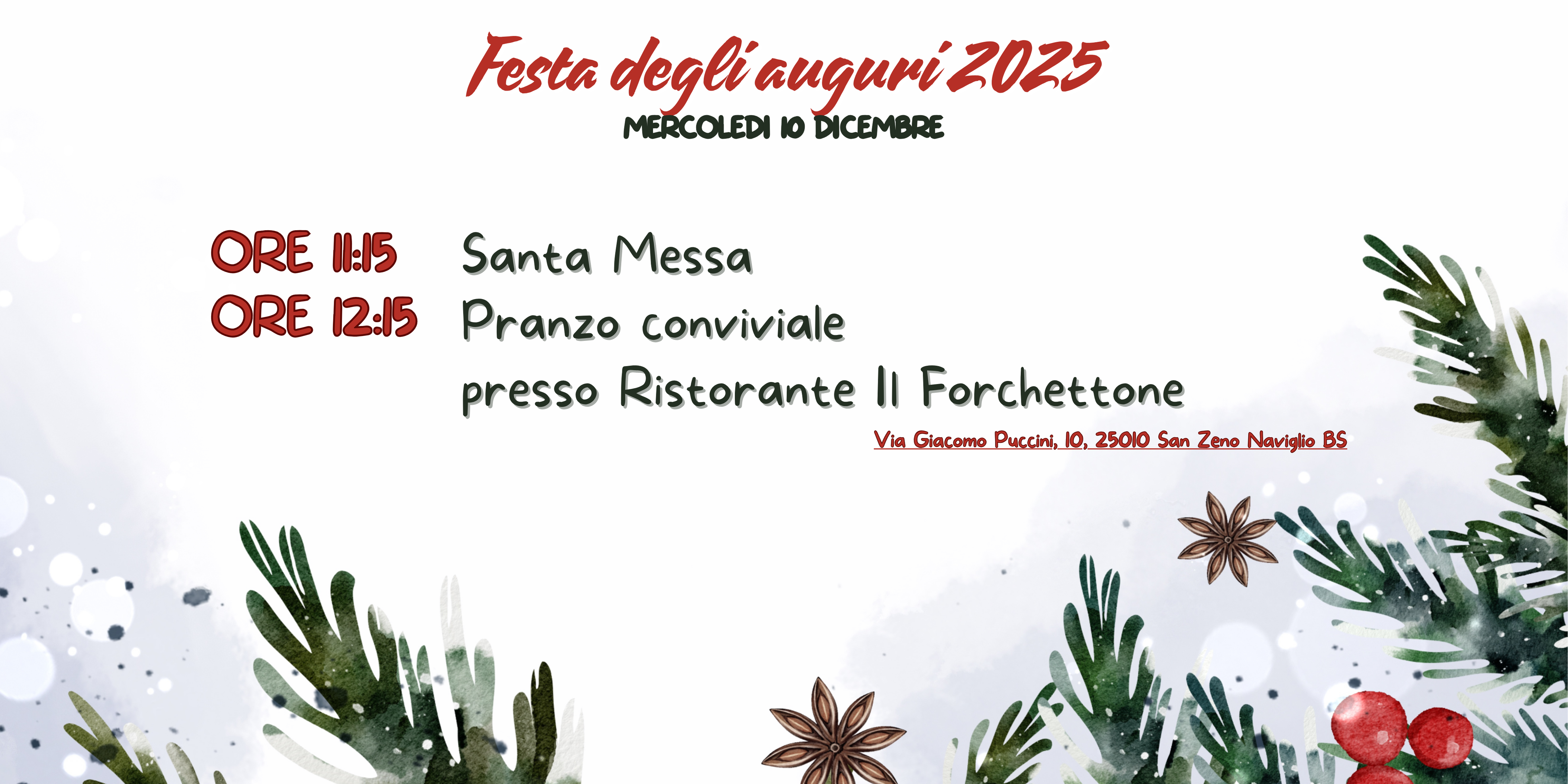 Anche quest'anno torna la Festa degli Auguri, un'occasione speciale per condividere lo spirito del Natale e rafforzare i legami della nostra comunità.