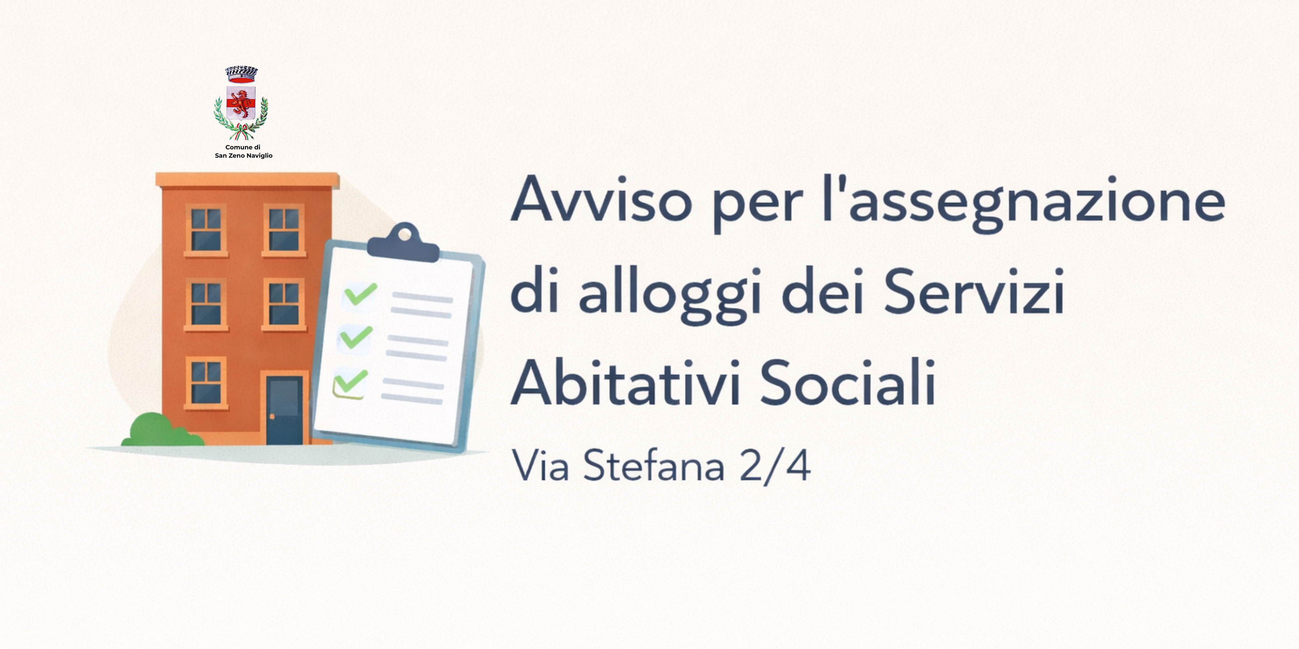 Il Comune di San Zeno Naviglio informa la cittadinanza che è stato pubblicato l' Avviso per l'assegnazione di alloggi dei Servizi Abitativi Sociali (SAS) ubicati in Via Stefana 2/4 .