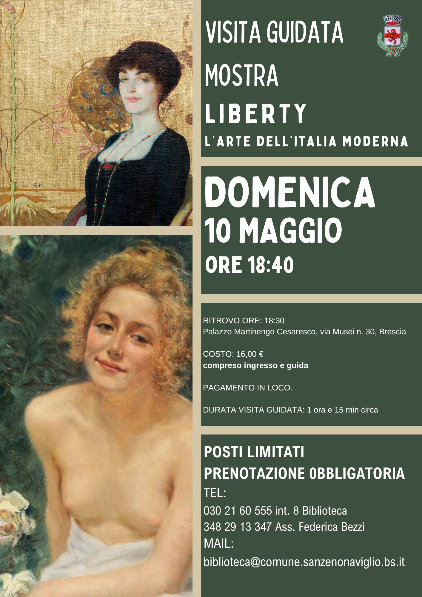 L'Assessorato alla Cultura promuove per domenica 10 maggio, alle ore 18.40, una visita guidata della " "Mostra Liberty: l'arte dell'Italia moderna" presso Palazzo Martinengo Cesaresco, via Musei n. 30, Brescia.