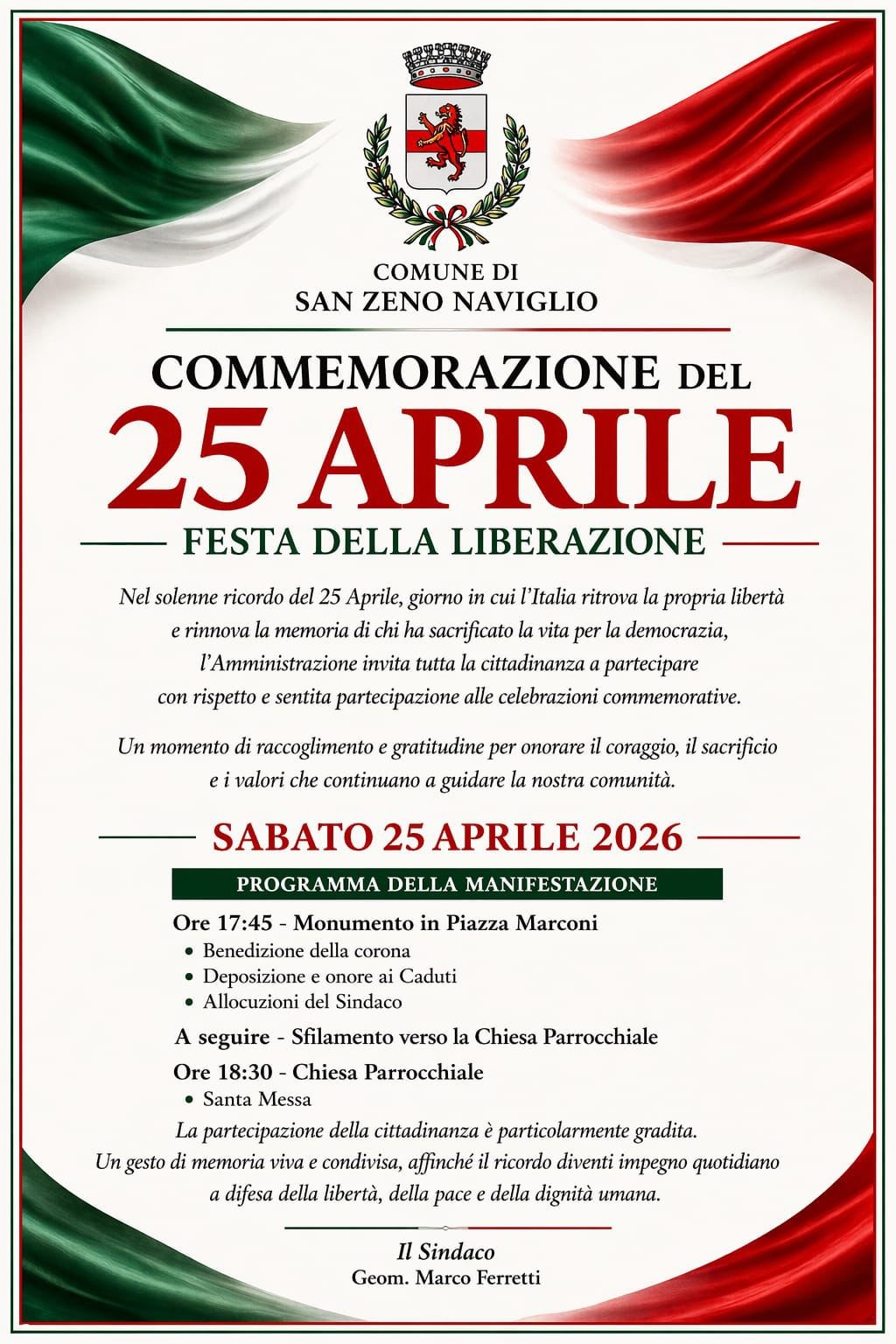 In vista della ricorrenza dell'81° Anniversario della Liberazione si invita la cittadinanza a partecipare numerosa, vedasi in dettaglio il programma.