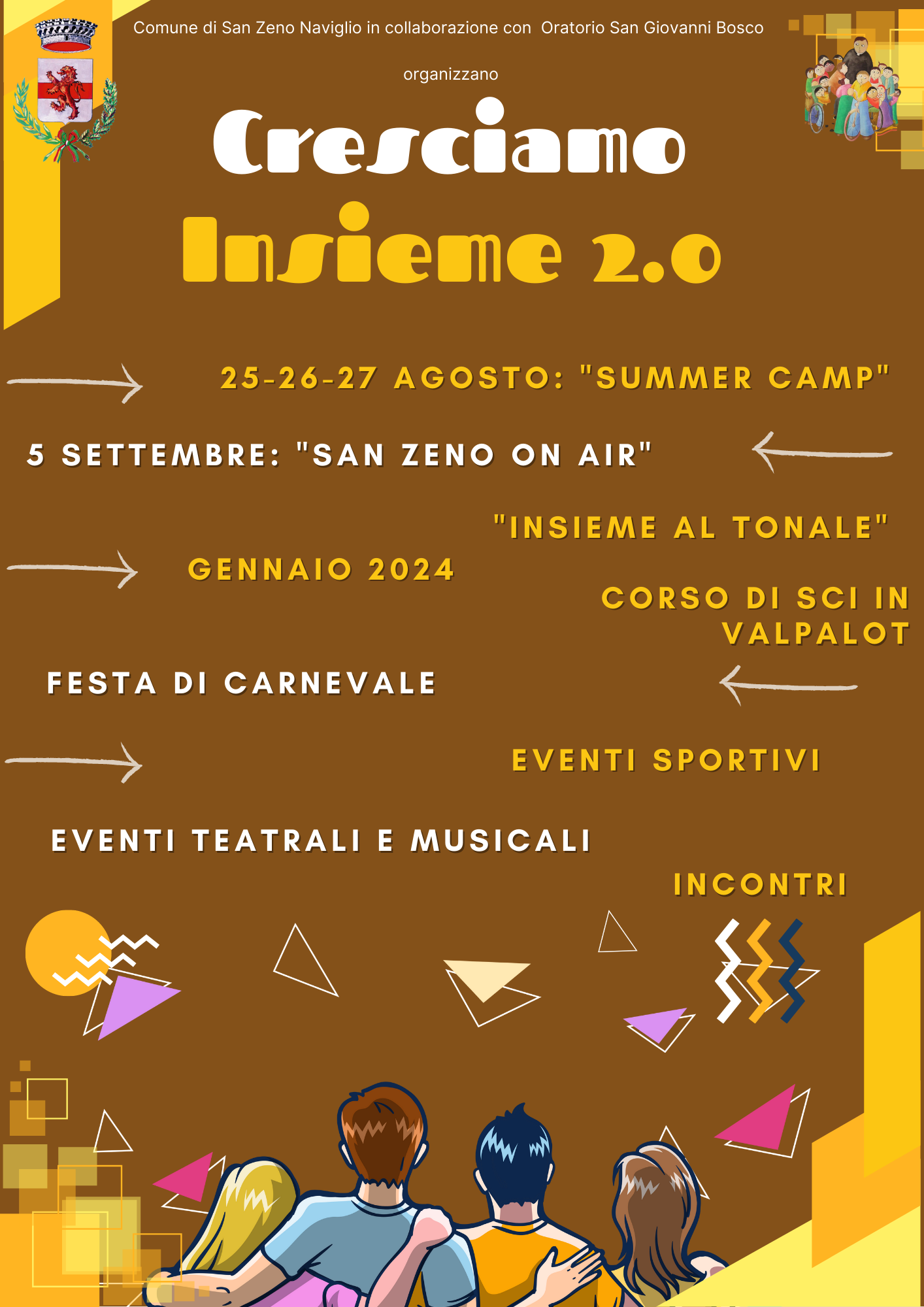 Le attività partiranno ad Agosto con il “Summer Camp Adolescenti”, creato in collaborazione con l’Oratorio San Giovanni Bosco: si tratta di un evento creato per gli adolescenti dai 15 ai 18 anni della durata di tre giorni in Val di Sole con esperienze di rafting sul fiume, tour in mountain bike, notti in tenda e tante altre iniziative da vivere all’aria aperta;