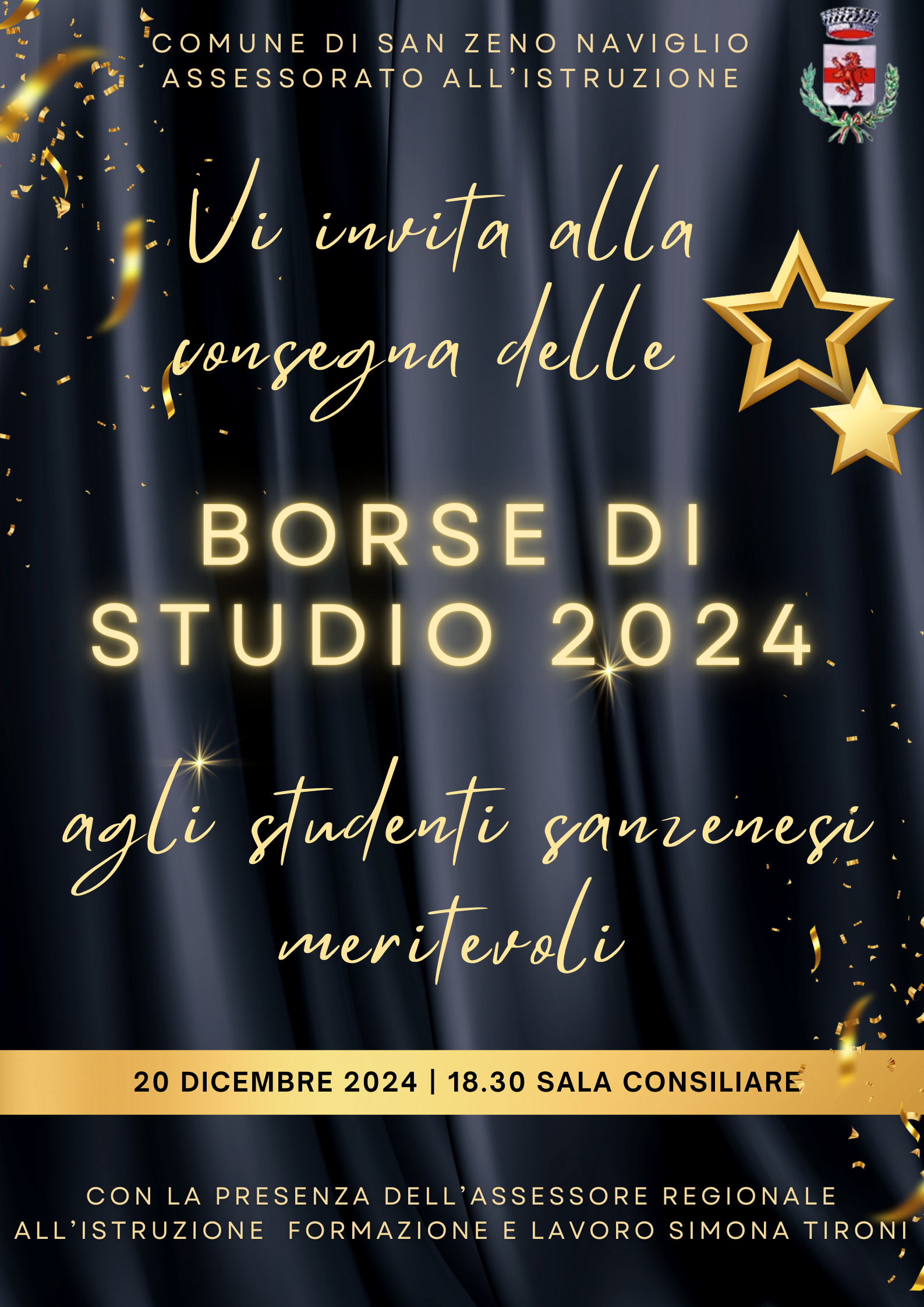 L'Assessore all'Istruzione Stefano Anselmi , unitamente al Sindaco ed in presenza dell’Assessore Regionale all’Istruzione, Formazione e Lavoro Dott.ssa Simona Tironi, invita gli studenti meritevoli alla consegna delle borse di studio a.s. 2023/2024 il 20/12/2024 alle ore 18.30 presso la Sala Consiliare del Comune.