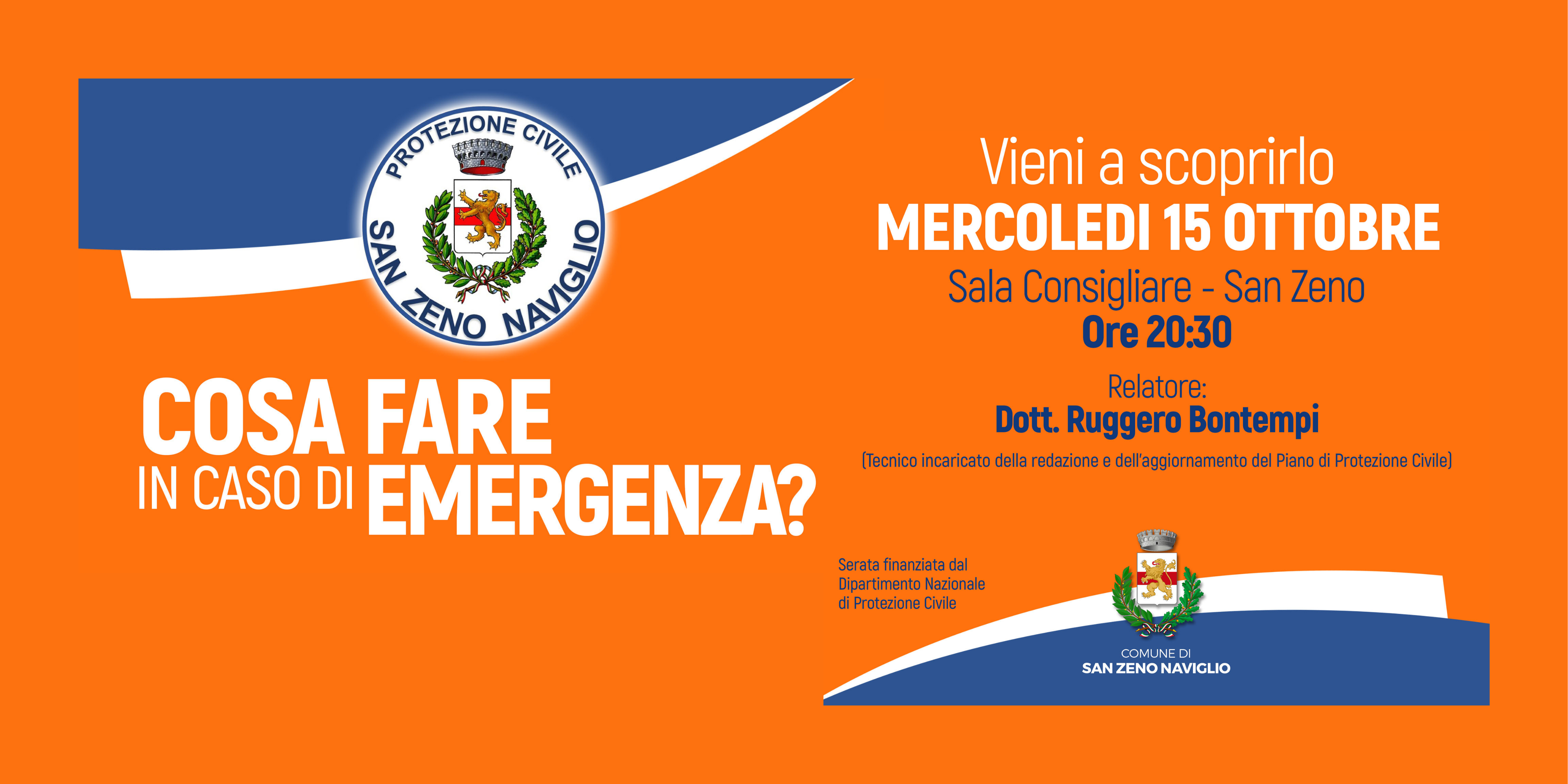 Il Comune di San Zeno Naviglio invita la cittadinanza a partecipare all'incontro pubblico di presentazione e approfondimento del Piano di Protezione Civile comunale.
