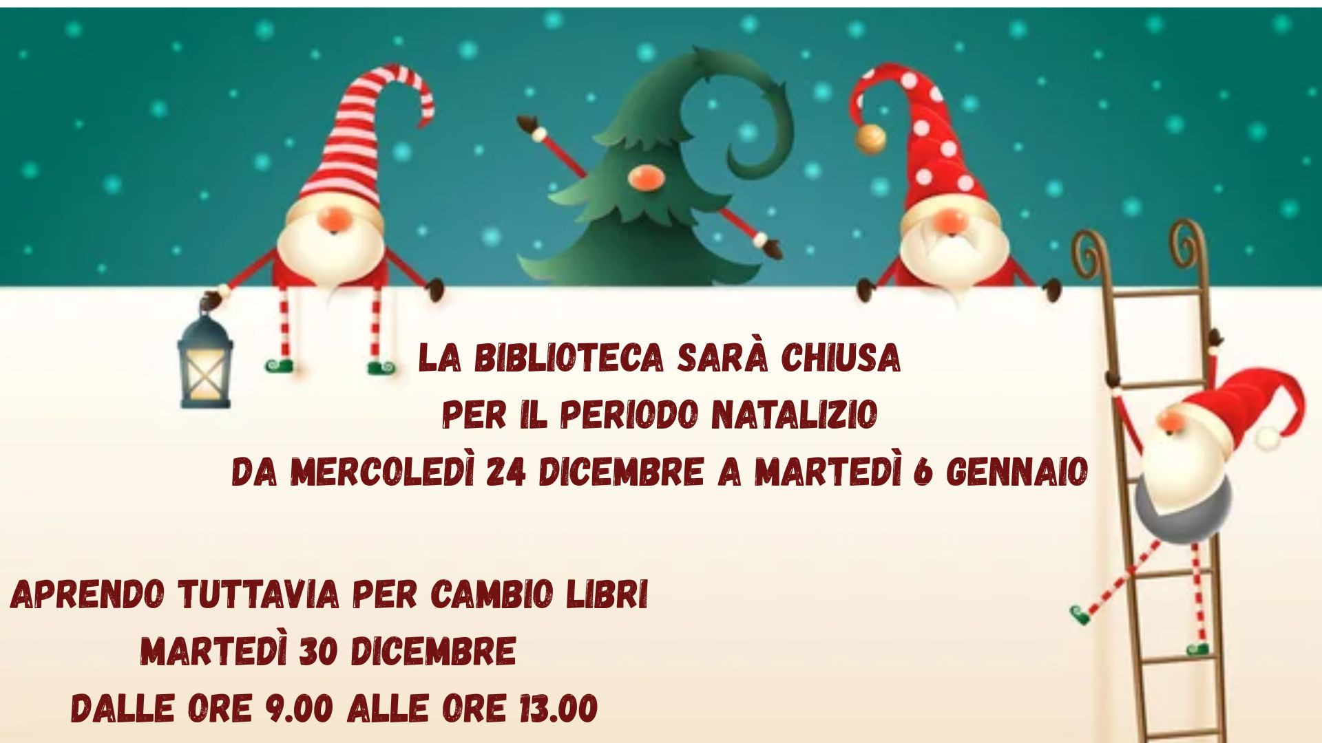 La Biblioteca Comunale sarà chiusa per ferie natalizie dal 24 dicembre 2025 al 6 gennaio 2026.
